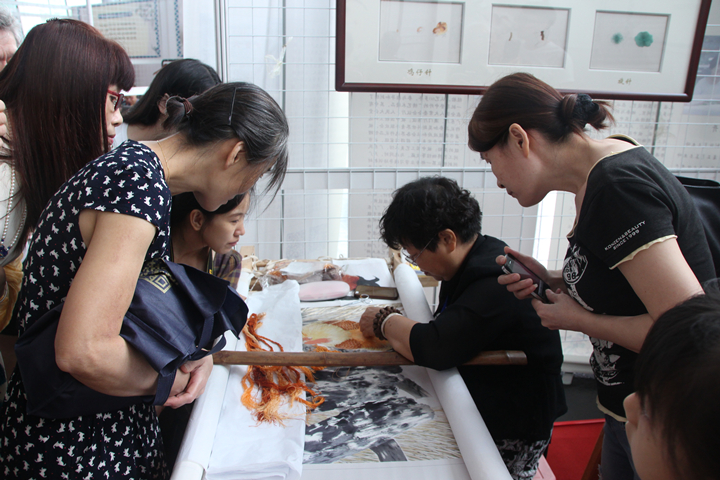 广绣大师的现场技艺展示吸引了众多宾客们的目光