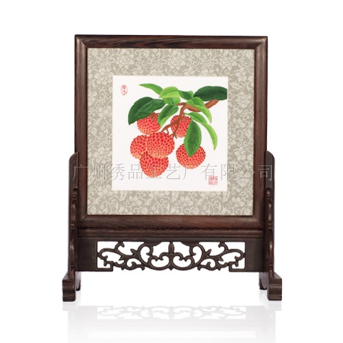 100%纯手工刺绣礼品,座架材质为鸡翅木